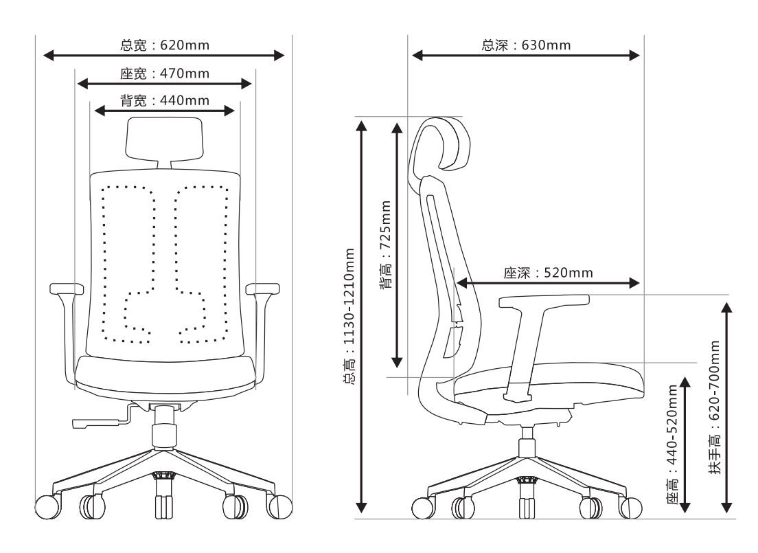 本系列產品主要主要針對企業職員辦公空間座椅需求,通過科學的曲線設計,以及135°可躺角度、升降頭枕、舒適腳托、升降扶手等功能配置,滿足職場白領對于舒適辦公,健康坐姿的需求。