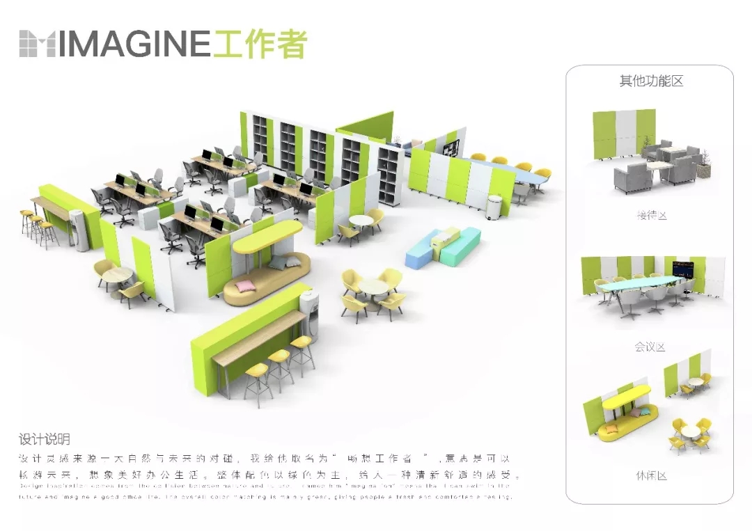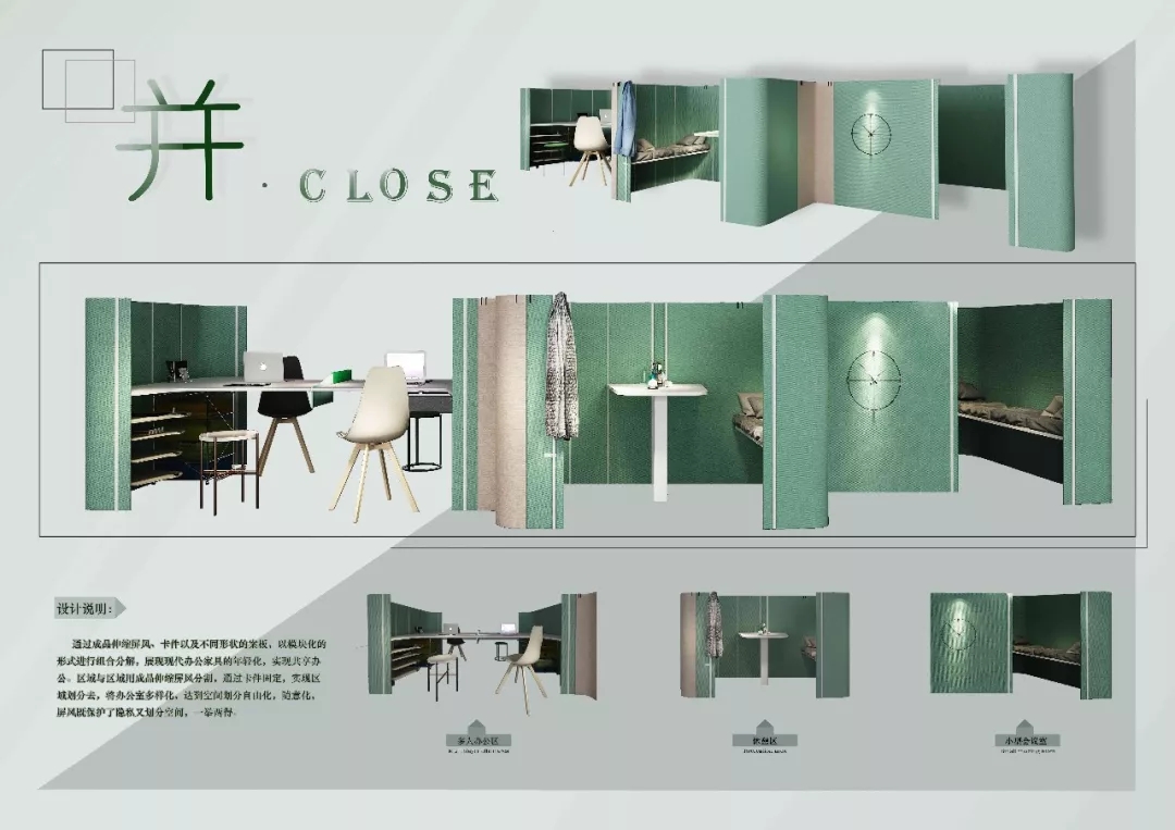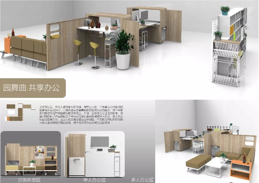 作品的策劃與大賽主題的整體關(guān)系,有清晰的創(chuàng)作概念示意圖,滿足共享辦公的需求。
