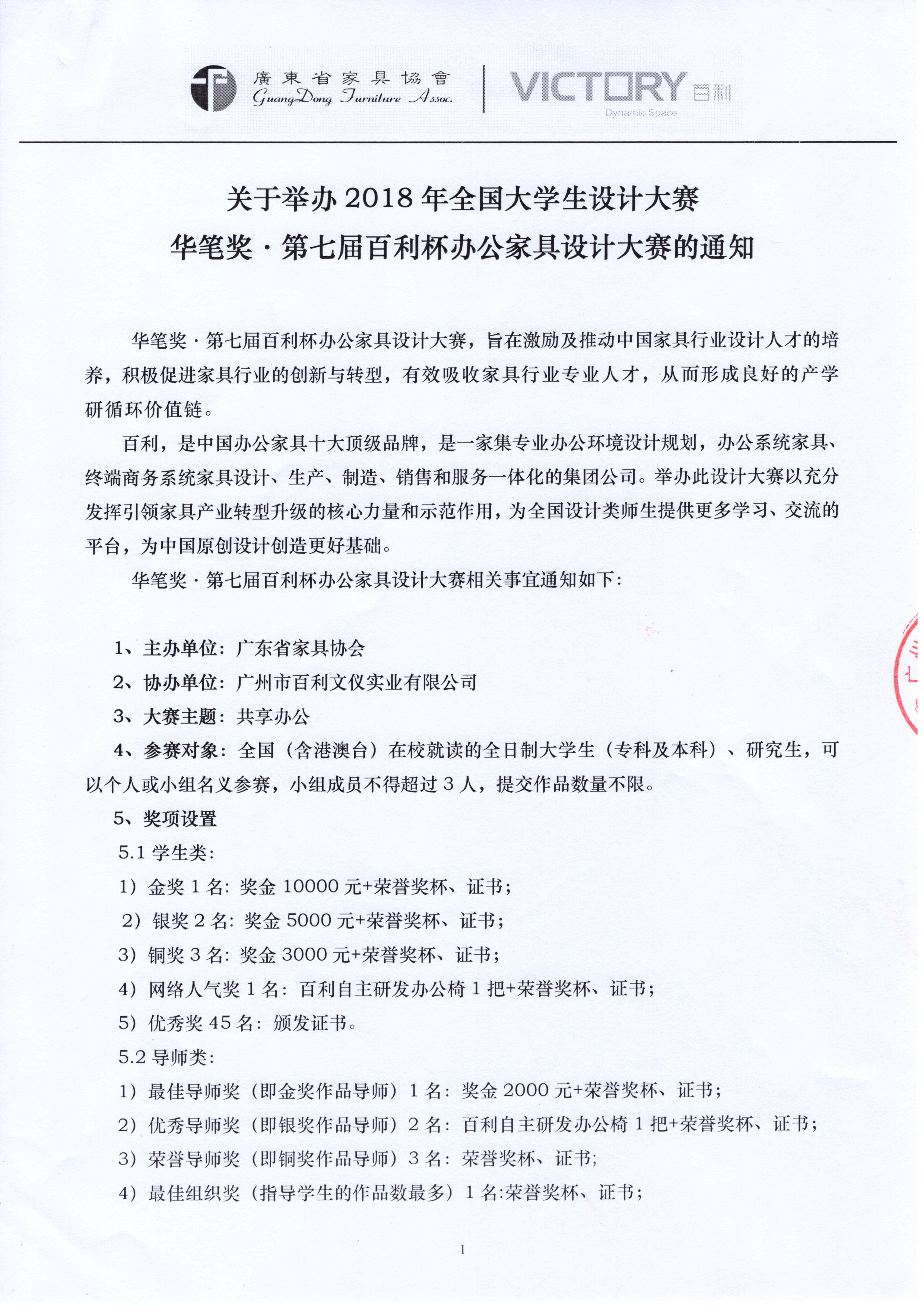 填寫《華筆獎·第七屆百利杯辦公家具設計大賽報名表》