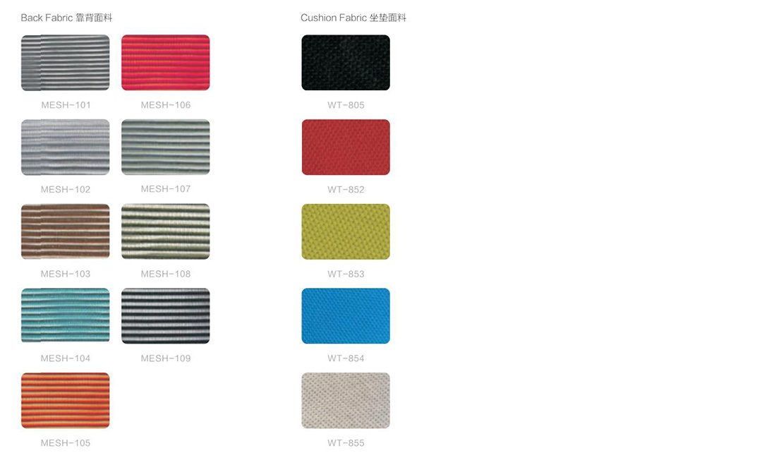 MESH-101灰色; MESH-102銀色; MESH-103咖啡色; MESH-104藍色; MESH-105黃色; MESH-106紅色; MESH-107深灰色 MESH-108杏色; MESH-109黑的; WT-805黑色; WT-852紅色; WT-853綠色; WT-854藍色; WT-855灰色